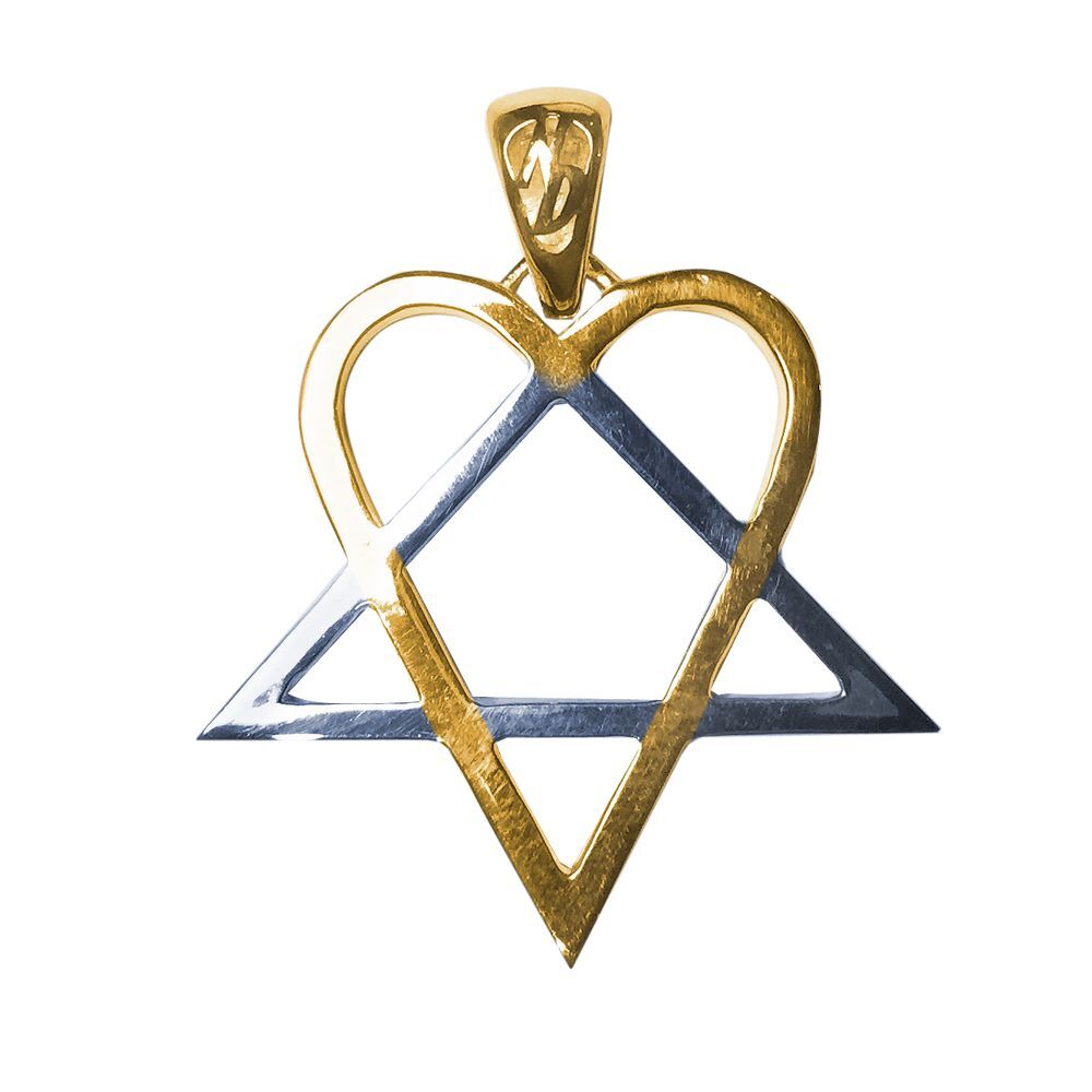 Амулет Хертаграмма Звезда Сердце - это украшение, представленное брендом WIZARD AD ASTRA, изготовленное из серебра стерлингового пробы 925 с золотым напылением. Этот оберег представляет собой символ сердца, заключенного в звезду, что символизирует стремление, желания и чувственную активность. Этот амулет поможет вам научиться слушать свой внутренний голос, чувствовать свои эмоции и любить и быть любимым. Размеры амулета составляют 37 мм в высоту и 29 мм в ширину, а его вес равен 4,5 грамма. Этот кулон станет отличным украшением и символом вашей любви и искренних чувств.