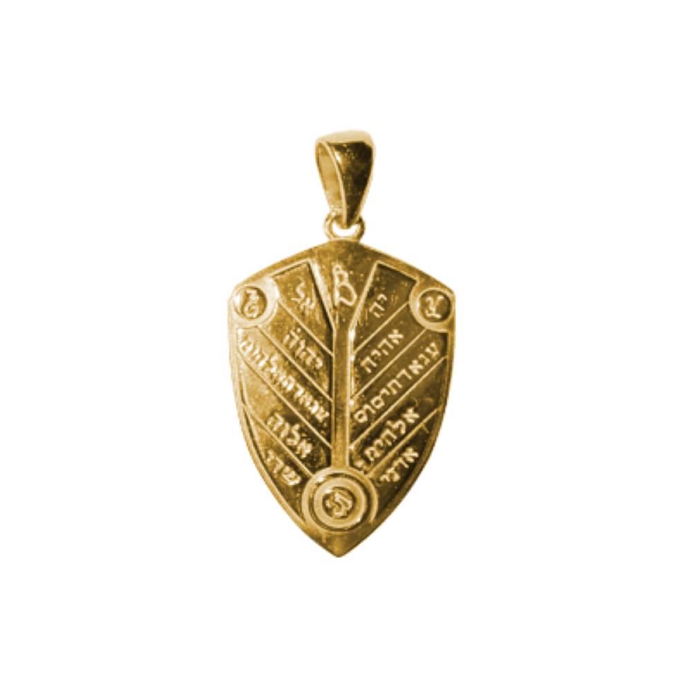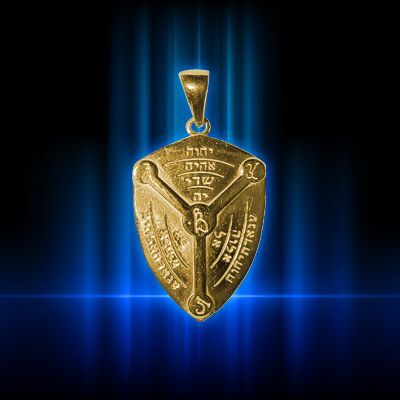 Изготовлен из серебра стерлинговой пробы 925 с покрытием позолотой, этот амулет имеет размеры 30 мм х 22 мм и весит 13 граммов. Металлическая основа амулета украшена узорами, символизирующими высшие духовные понятия.