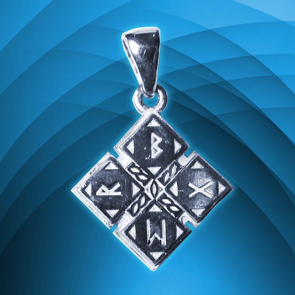 Талисман Амулет Щит Викингов - Щит Одина в серебряном исполнении представляет собой защитный оберег, созданный согласно рунической магии. Он обеспечивает защиту от внешних угроз и внутренних колебаний, помогая своему обладателю достигать поставленных целей. Этот талисман подходит для активных людей, которым важна не просто гармония, а безопасность на пути к успеху. Изготовлен из серебра 925 пробы, имеет размеры 20 мм в высоту и в ширину, весит 5,8 грамм. Талисман отличается этнической тематикой украшения.