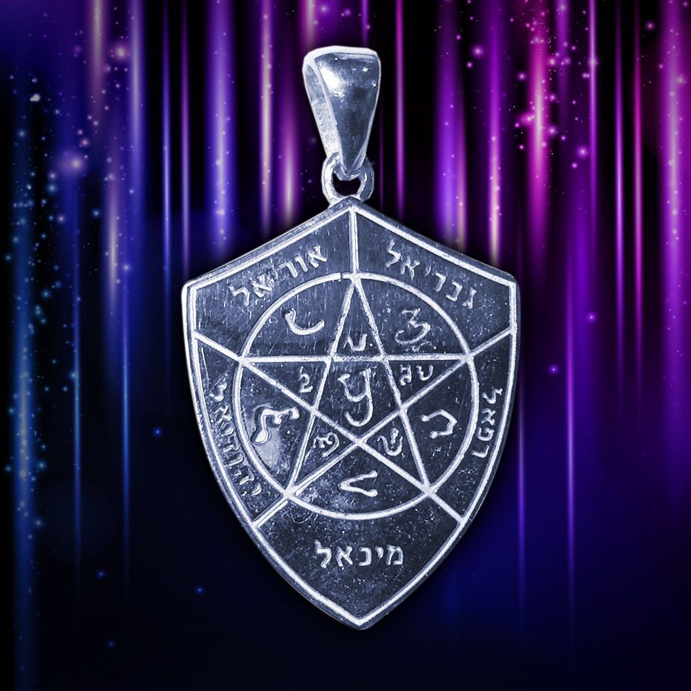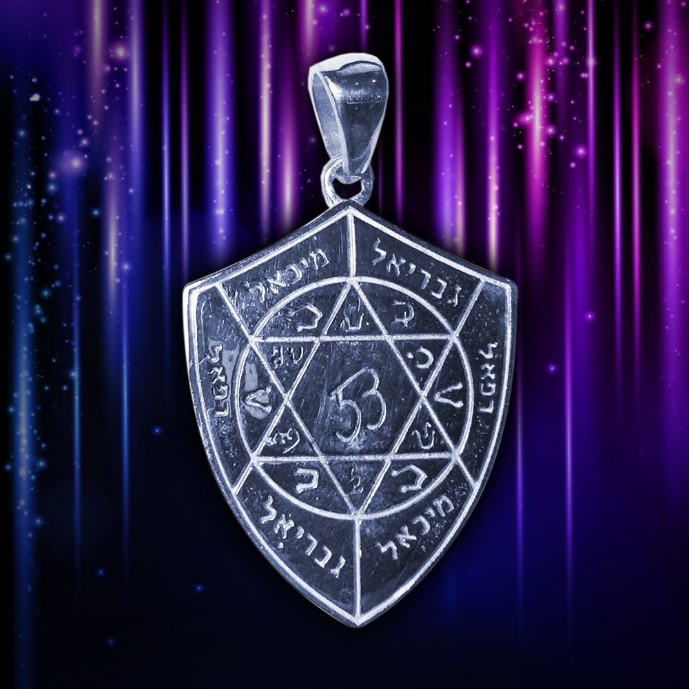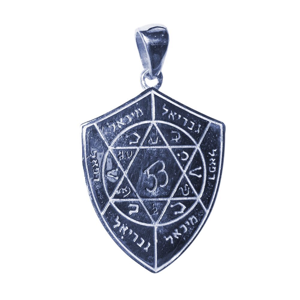 Талисман создан с использованием имен Бога – защищающих, карающих, оберегающих и сильных, что обеспечивает максимальную защиту от магического воздействия и безопасность владельцу. Вес амулета составляет 10,9 грамм, а размеры в высоту и ширину равны 30 мм и 25 мм соответственно. Изделие упаковано в коробку размером 150 x 50 x 100 мм.