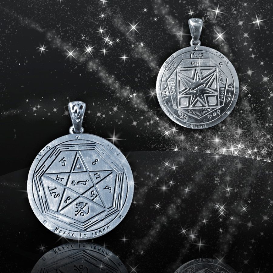 Основные характеристики талисмана включают в себя поддержку в делах, процветание, силу и возможность получить желаемое. Этот ювелирный амулет имеет диаметр 3 сантиметра и весит 7,2 грамма. Материал изготовления - серебро 925 с родированием, что обеспечивает долговечность и блеск украшения.