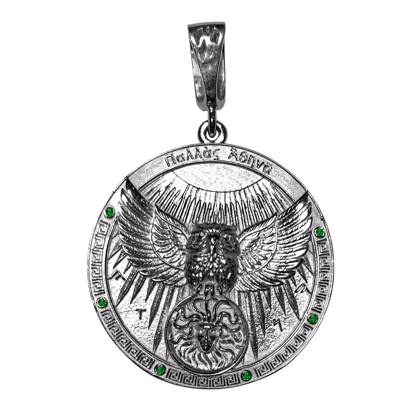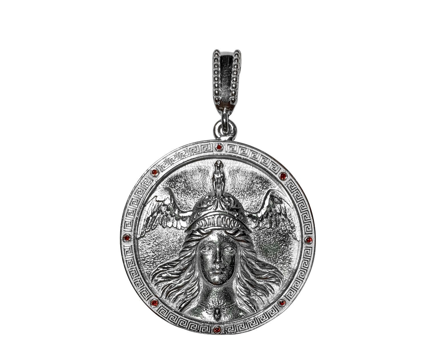 "Женский талисман жизненного успеха Афина" от бренда WIZARD AD ASTRA - это украшение из серебра стерлингового с символикой богини мудрости, знаний и женской силы. Этот амулет предназначен для женщин, стремящихся к успеху, гармонии в отношениях и защите своих начинаний. На лицевой стороне амулета изображение Афины, а на обратной - ключевые символы богини, обеспечивающие безопасность владельцу. Вес изделия составляет 37.2 грамма, диаметр - 35 мм. Амулет украшен 6 топазами и 8 гранатами. Подойдет как женщинам, ищущим помощь и поддержку в своей жизни и деятельности.